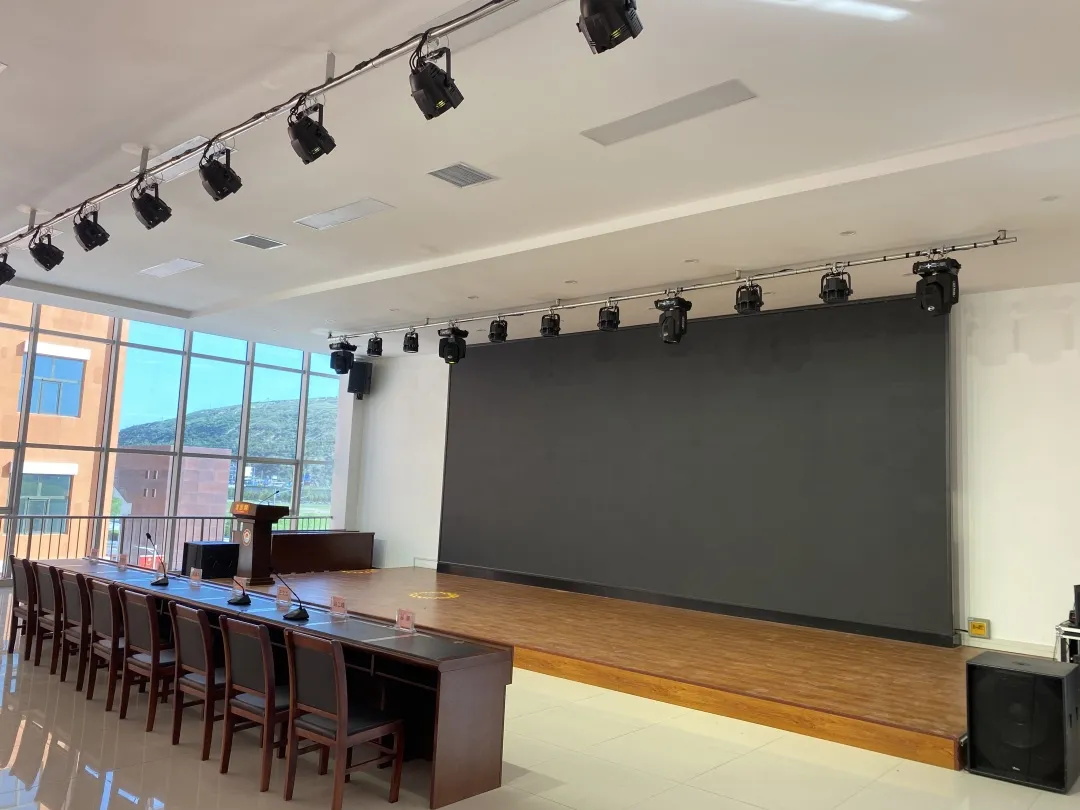 京邦電子(KING-BANG)為會議室設計的舞臺燈光系統,滿足了其用來召開各類會議、學術討論、演講、報告、新聞發布、多媒體教學培訓、觀看電影等活動的需要,大大提高了工作效率和觀看體驗。