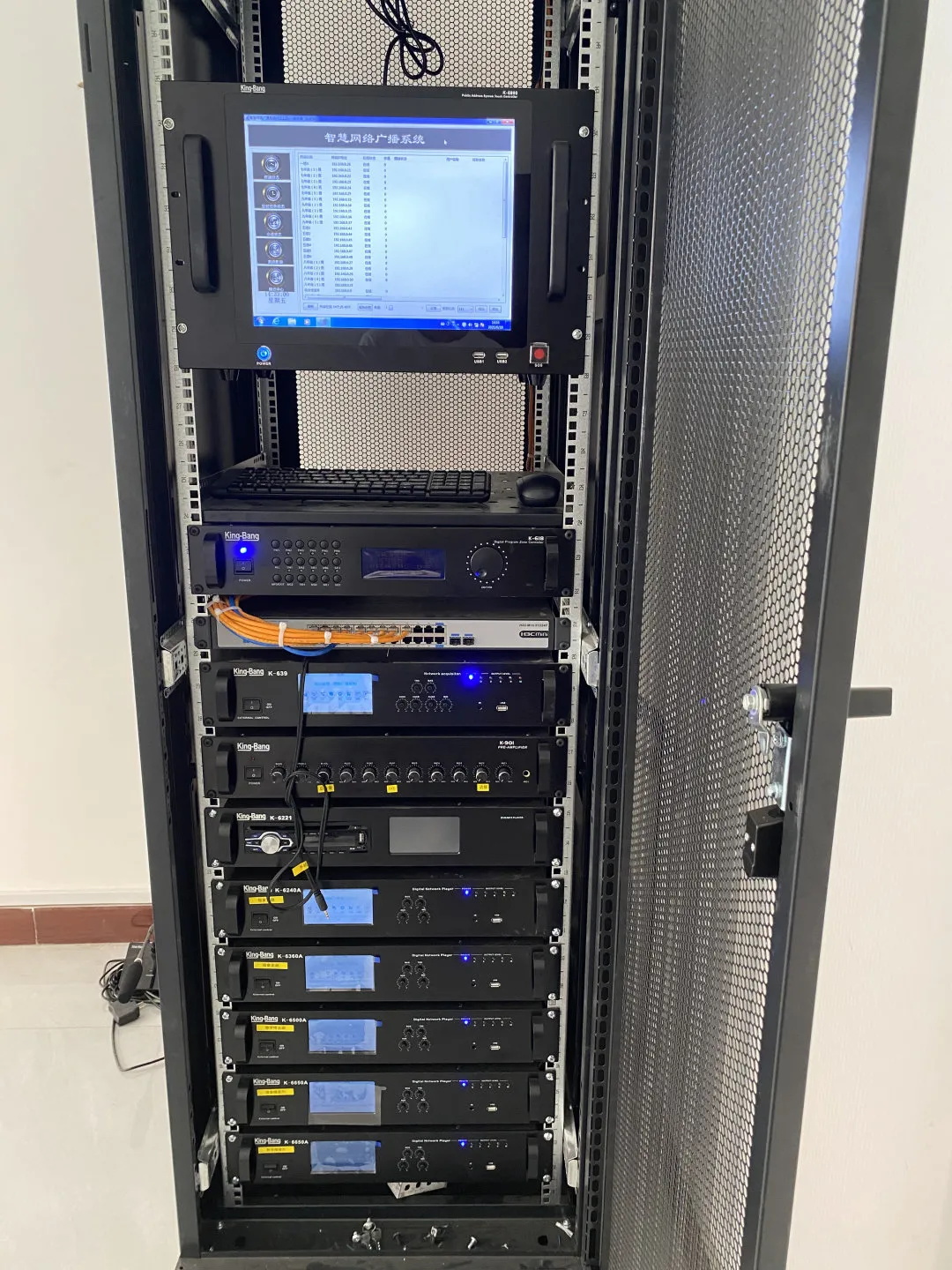 京邦電子(KING-BANG)干凈利落的機柜排列,實現設備的集中管理,更方便操控各類器材,更輕松進行管理和精確的控制。讓客戶通過簡單的操作,實現對各類系統設備的實時控制,輕松達到預想效果。