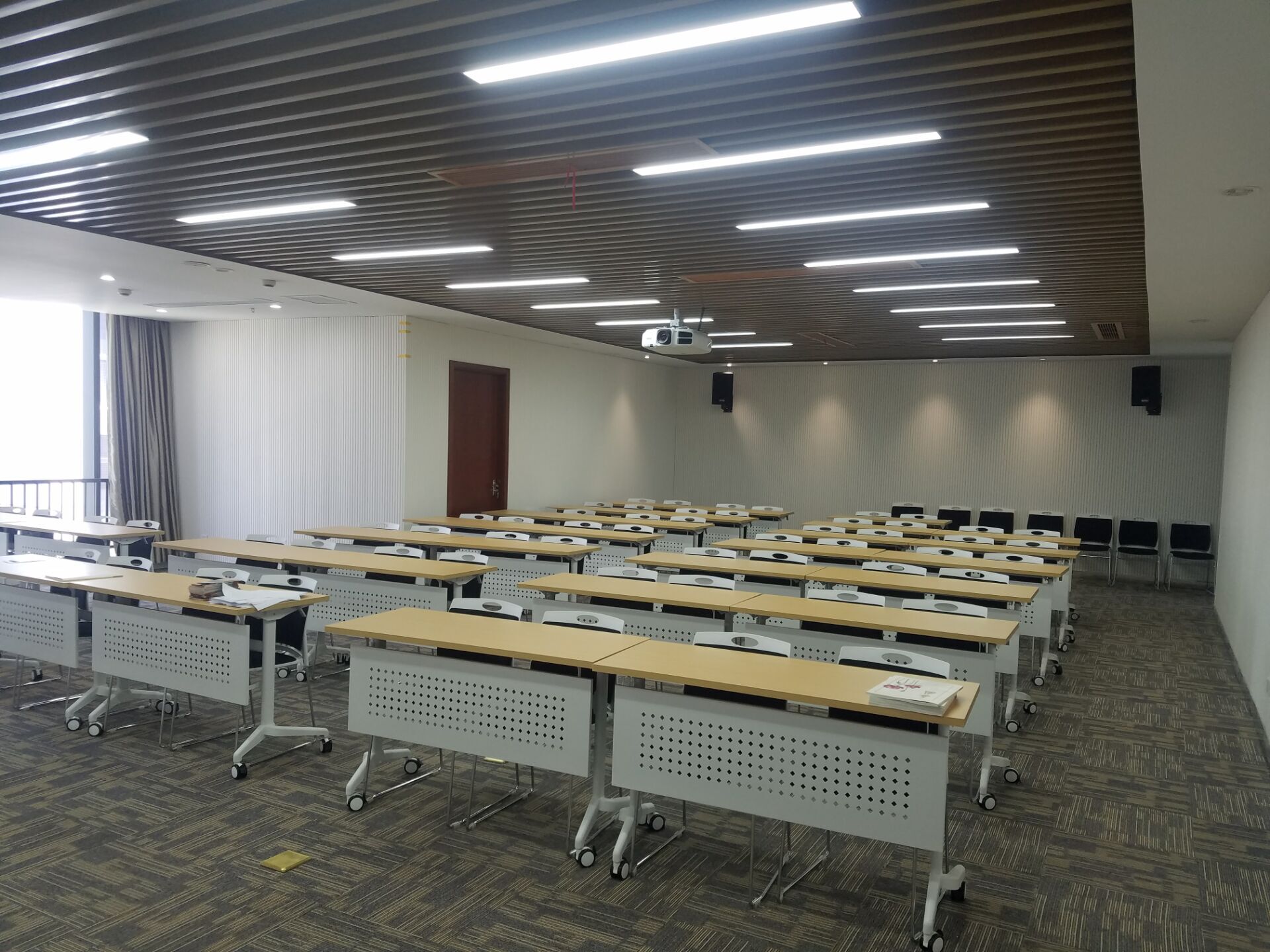 專業擴聲系統簡單來說就是把聲音信號放大,主要由聲源、音頻處理設備、功放及揚聲器系統組成。通過計算會議室的音響場地系數進行設計,保證會議室每個角落的聲場聽覺均勻,音響效果達到語言清晰、無失真、聲場分布均勻。