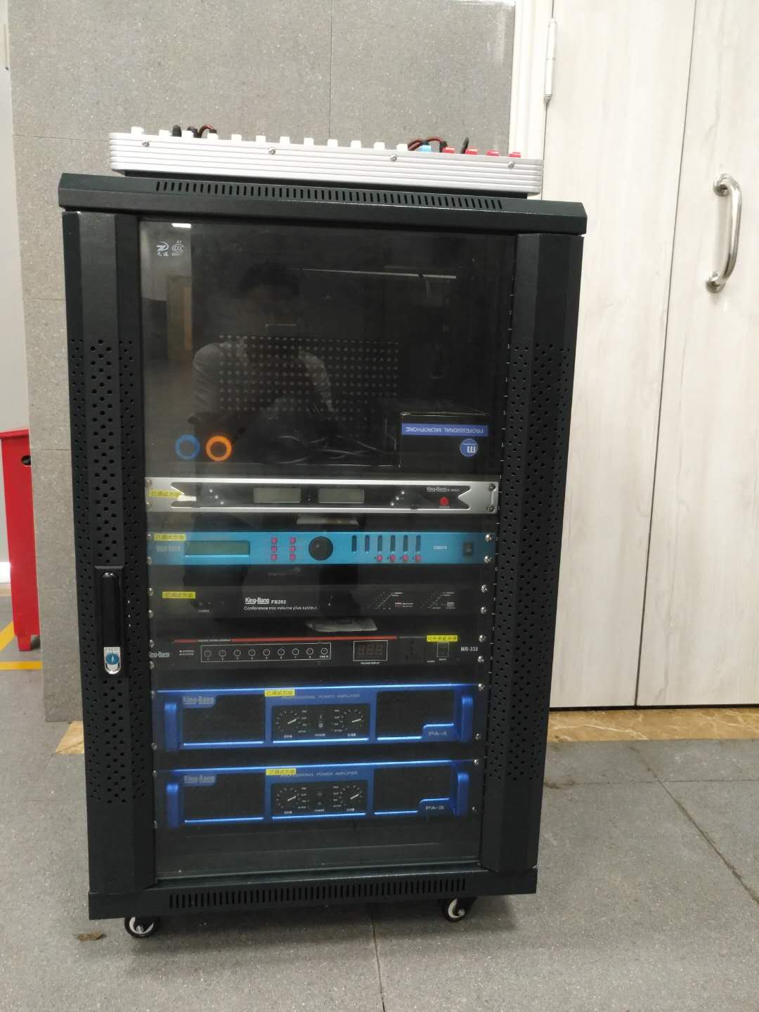專業擴聲系統簡單來說就是把聲音信號放大,主要由聲源、音頻處理設備、功放及揚聲器系統組成。通過計算會議室的音響場地系數進行設計,保證會議室每個角落的聲場聽覺均勻,音響效果達到語言清晰、無失真、聲場分布均勻。