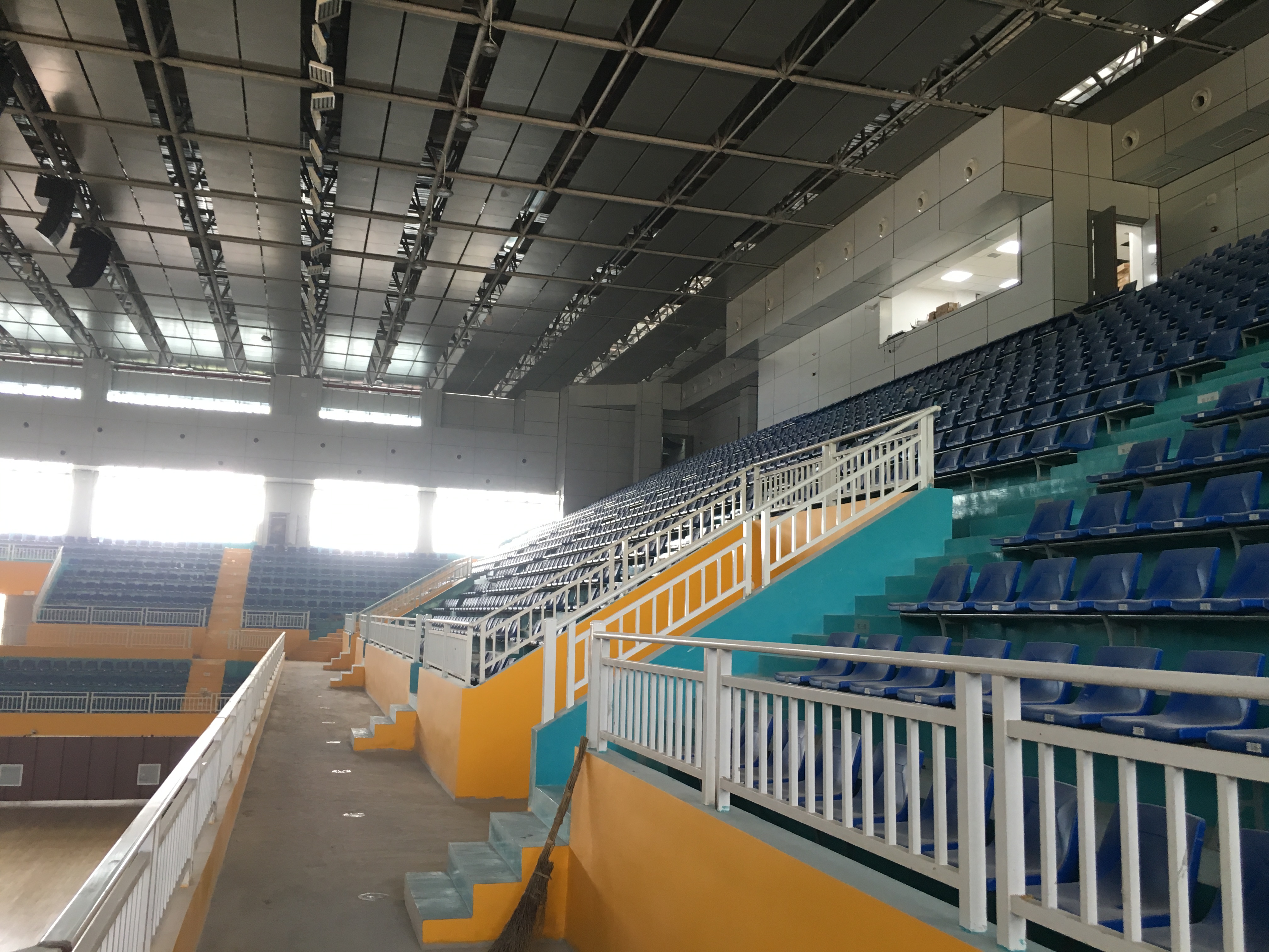 在體育館的左右兩側分別裝了2只KS-218雙18寸線性陣列-低音炮,16只KS-208雙8寸線性陣列-全頻,10只KS-118線性陣列-低音炮做為主擴系統。