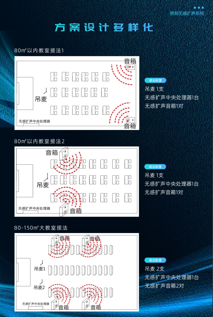 采用無接觸拾音設備,更安全舒適,讓老師在教室中不再被束縛,解放雙手,自由行走在教室中,活動范圍無限制,無需繁瑣的調試準備,授課過程輕松暢談,讓聲音傳播到教室內的每個角落,可以更加專注于授課內容